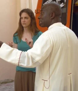 Dr. Gabriella Nanci and Msgr Simon Assamoah loading a van with medical supplies.